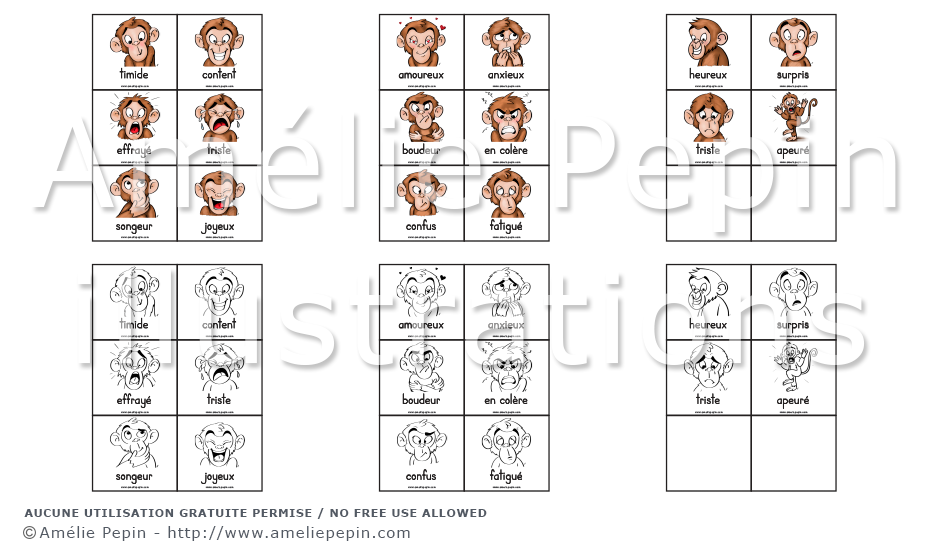 Tags: 1st grade, 2nd grade, French, Pre-K and Kindergarten, Animals, Characters, Monkey, Themes, Emotions