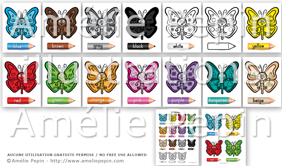 Tags: 1re année, Insectes et bestioles, Anglais, Couleurs, Préscolaire et maternelle, Personnages, Papillon, Thèmes