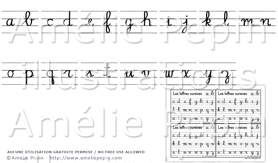 Calligraphie des lettres minuscules en cursif. 2 formats sont inclus:
