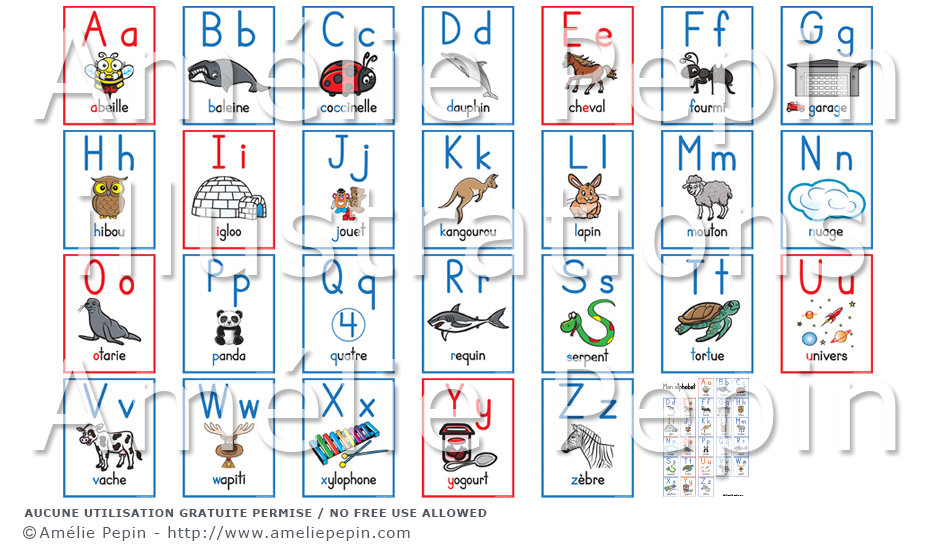 Les voyelles sont en rouge et les consonnes en bleu. Lors de l'impression du document, n'oubliez pas de cocher la case ''réduire à la zone d'impression'' pour imprimer les pages entièrement.