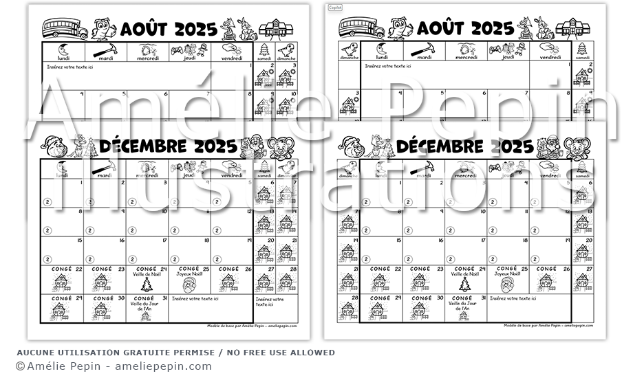 Calendriers 2025-2026 Préscolaire (2 versions)