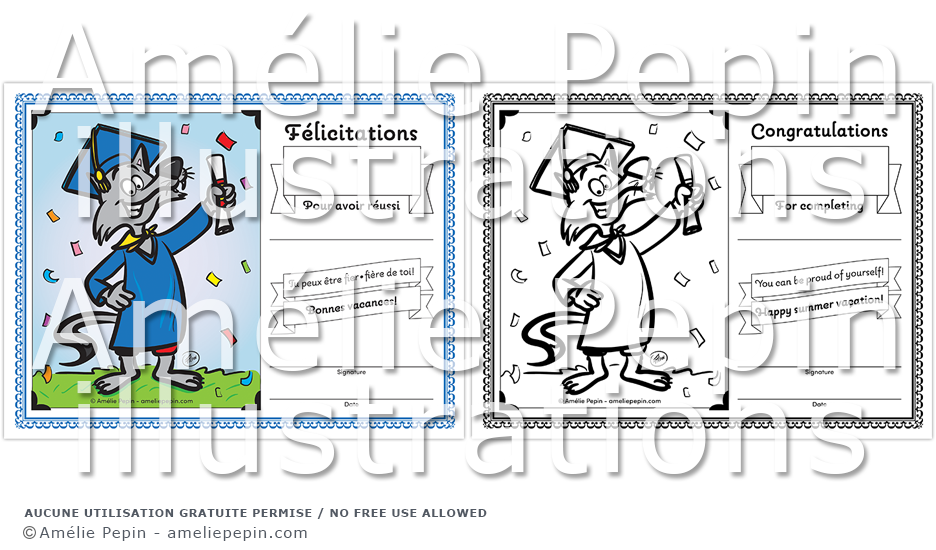 Récompensez la réussite d'une année scolaire complétée avec ce joyeux diplôme de loup! Les informations à compléter doivent être écrites à la main.