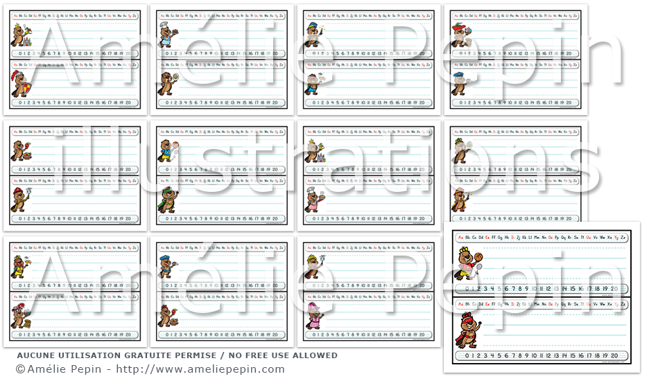 Chaque étiquette contient les lettres de l'alphabet avec les voyelles écrites en rouge, un trottoir pour écrire le prénom de l'enfant ainsi que les nombres de 0 à 20. La version PowerPoint vous permet d'écrire le nom de l'enfant à l'ordinateur (il n'y a pas de trottoir dans cette version). Assurez-vous d'avoir le logiciel Microsoft PowerPoint installé sur votre ordinateur pour ouvrir cette version.