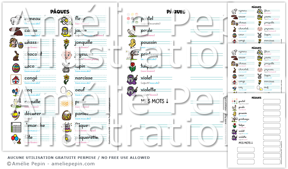 Tags: 1re année, 2e année, Français, Pâques, Préscolaire et maternelle, 3e - 4e années, 5e et 6e années, Thèmes, Listes de mots