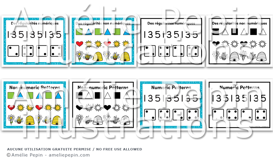 Affiches qui illustrent les régularités non-numériques et les régularités numériques.