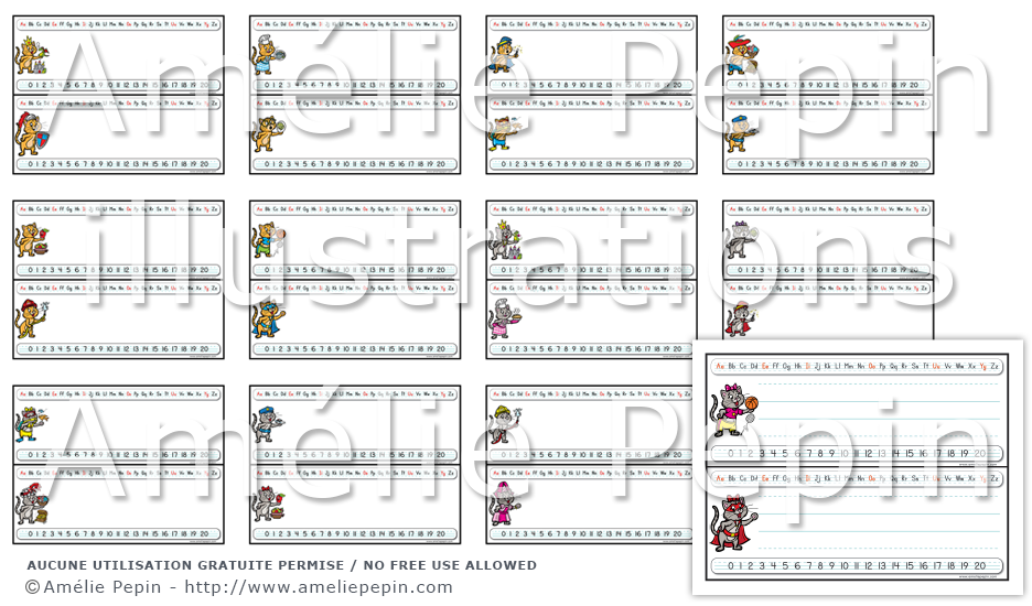 Chaque étiquette contient les lettres de l'alphabet avec les voyelles écrites en rouge, un trottoir pour écrire le prénom de l'enfant ainsi que les nombres de 0 à 20. La version PowerPoint vous permet d'écrire le nom de l'enfant à l'ordinateur (il n'y a pas de trottoir dans cette version). Assurez-vous d'avoir le logiciel Microsoft PowerPoint installé sur votre ordinateur pour ouvrir cette version.