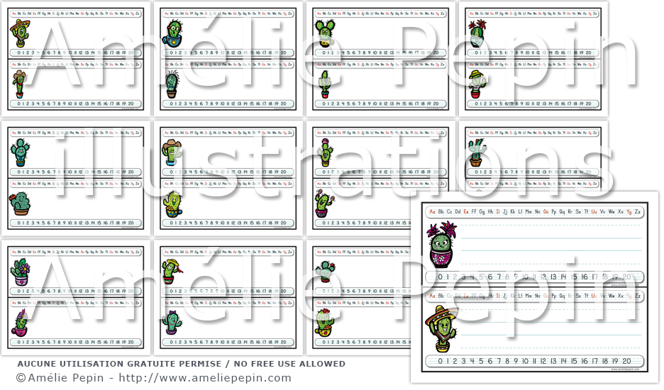 Chaque étiquette contient les lettres de l'alphabet avec les voyelles écrites en rouge, un trottoir pour écrire le prénom de l'enfant ainsi que les nombres de 0 à 20. La version PowerPoint vous permet d'écrire le nom de l'enfant à l'ordinateur (il n'y a pas de trottoir dans cette version). Assurez-vous d'avoir le logiciel Microsoft PowerPoint installé sur votre ordinateur pour ouvrir cette version.