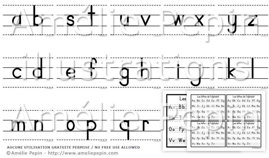 Calligraphie des lettres minuscules en script. 3 formats sont inclus: