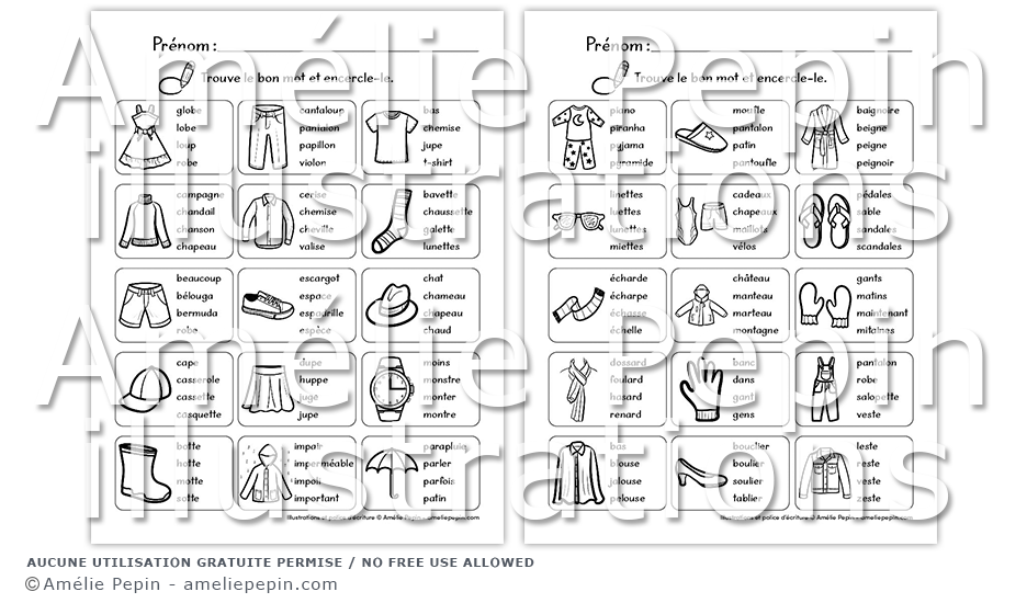 L'élève encercle le mot qui correspond à chaque image. Plusieurs mots se ressemblent, il devra lire les choix de réponse attentivement!