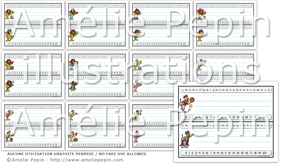 Chaque étiquette contient les lettres de l'alphabet avec les voyelles écrites en rouge, un trottoir pour écrire le prénom de l'enfant ainsi que les nombres de 0 à 20. La version PowerPoint vous permet d'écrire le nom de l'enfant à l'ordinateur (il n'y a pas de trottoir dans cette version). Assurez-vous d'avoir le logiciel Microsoft PowerPoint installé sur votre ordinateur pour ouvrir cette version.