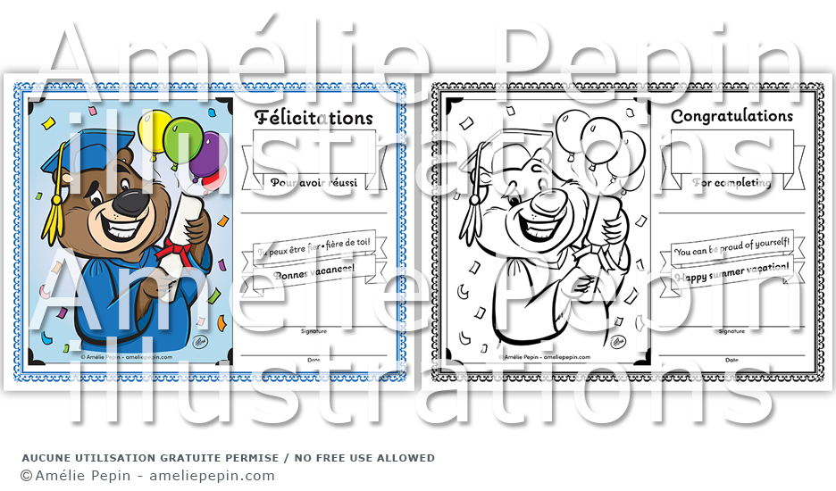 Récompensez la réussite d'une année scolaire complétée avec ce joyeux diplôme d'ours! Les informations à compléter doivent être écrites à la main.