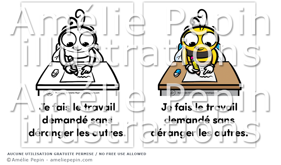 Règle de classe illustrée avec une abeille: "Je fais le travail demandé sans déranger les autres."