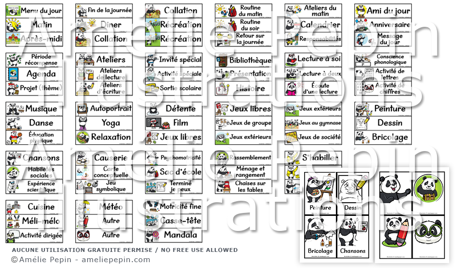 - Une page de pandas en format PowerPoint à texte modifiable (.pptx) est incluse