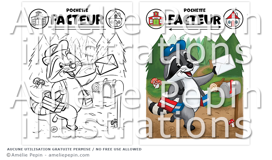 Couverture pour pochette facteur. Une version à colorier est incluse.