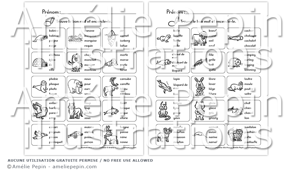 L'élève encercle le mot qui correspond à chaque image. Plusieurs mots se ressemblent, il devra lire les choix de réponse attentivement!