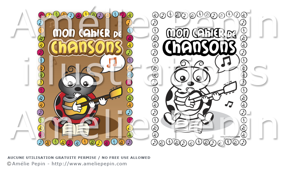 Voici une page couverture pour votre cahier de chansons. Une marge a été prévue à gauche pour l'insertion dans un duo-tang.