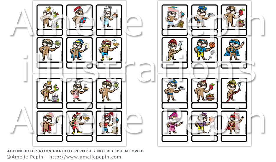 Ce fichier contient 12 paresseux garçons et 12 paresseux filles pour identifier les crochets de vos élèves (ou autre). Un espace est prévu sous l'image pour inscrire le prénom des enfants. Chaque étiquette mesure environ 3 po. X 3 1/2 po. Le document PowerPoint vous permet d'inscrire les noms des élèves à l'ordinateur.