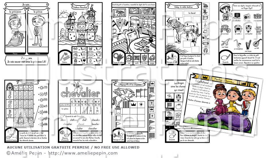 La princesse Lili est enfermée dans le donjon du château Beaufort. Un dragon ne veut pas la laisser s'échapper. Les enfants doivent la libérer en complétant une série d'exercices illustrés: