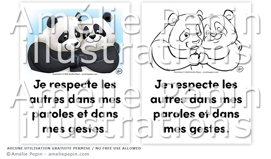 Règle de classe illustrée avec des pandas: "Je respecte les autres dans mes paroles et dans mes gestes."