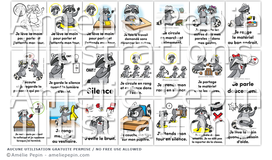 Les règles de vie illustrées avec des ratons laveurs sont: