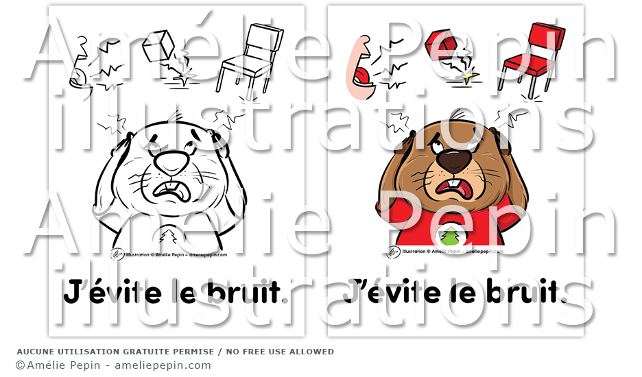 Règle de classe illustrée avec un castor: "J'évite le bruit."