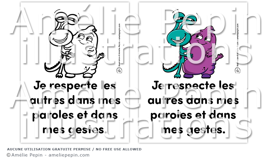 Règle de classe illustrée avec des monstres: "Je respecte les autres dans mes paroles et dans mes gestes."