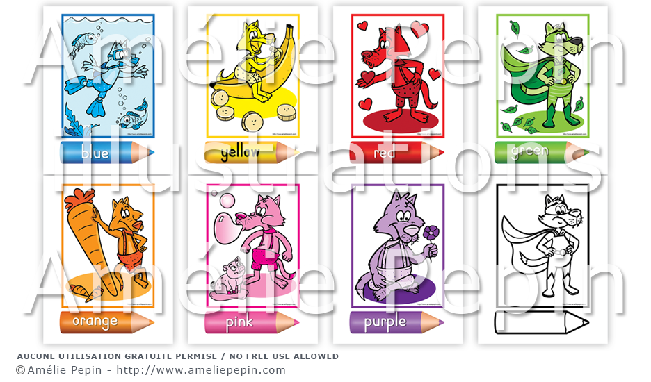 Tags: 1re année, Anglais, Couleurs, Préscolaire et maternelle, Animaux, Personnages, Loup, Thèmes