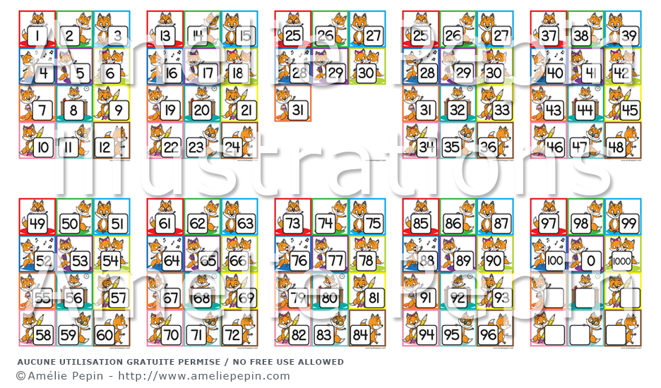 Nombres 0 à 100, renards