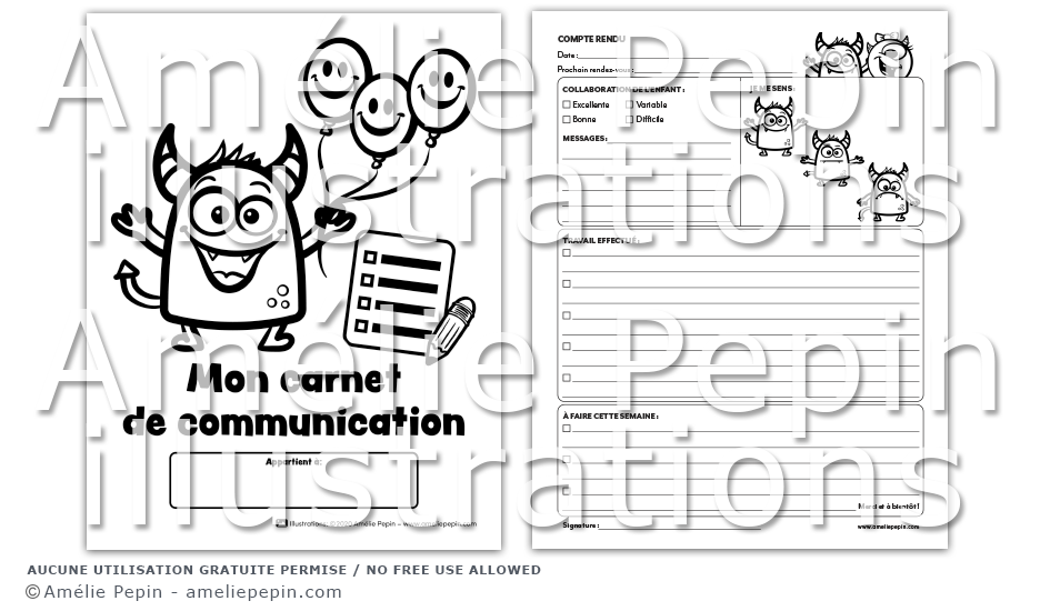 Voici une page couverture pour vos carnets de communication accompagnée d'une fiche de compte rendu en fichier séparé. La fiche vous permet d'informer les parents de la collaboration de l'enfant, du travail effectué et de celui à faire. Une partie "Je me sens" peut être remplie par l'enfant.