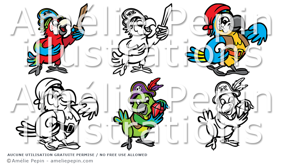 Perroquets pirates - 6 images Clip Art