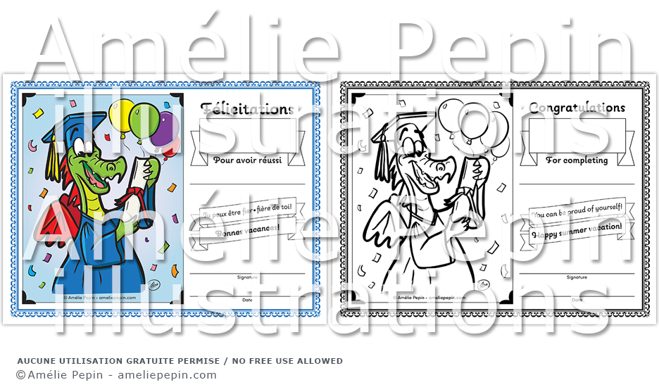 Récompensez la réussite d'une année scolaire complétée avec ce joyeux diplôme de dragon! Les informations à compléter doivent être écrites à la main.