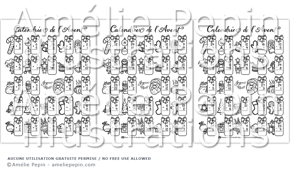 Calendriers de l'Avent pour réviser les complémentaires de 24. Vous pouvez choisir un calendrier qui contient seulement les additions, seulement les soustractions, ou encore, un mélange d'additions et de soustractions.