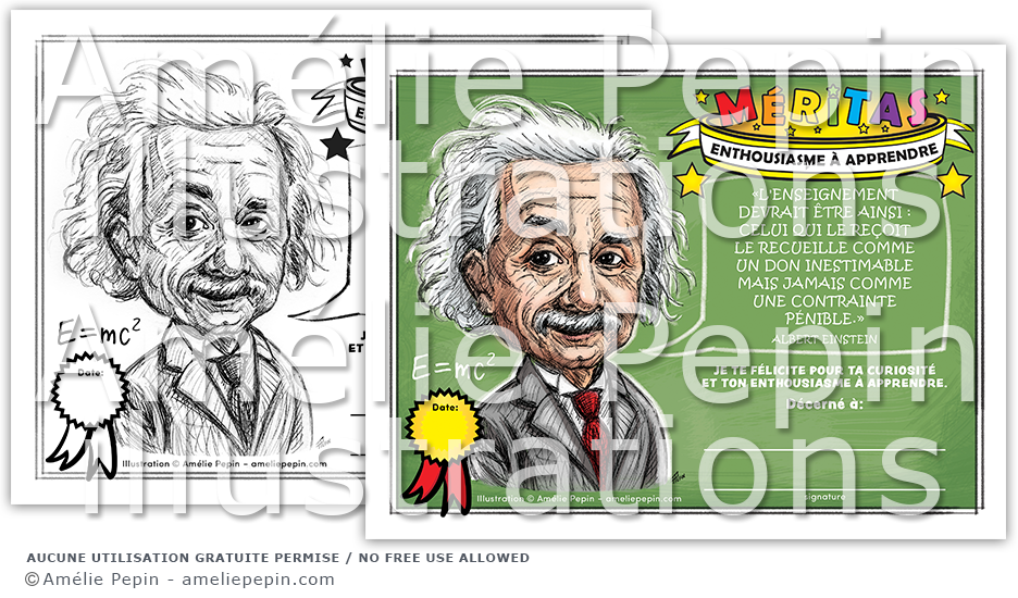 Diplôme pour féliciter vos élèves de leur enthousiasme à apprendre à l'aide de la fameuse citation d'Albert Einstein: "L'enseignement devrait être ainsi : celui qui le reçoit le recueille comme un don inestimable mais jamais comme une contrainte pénible."