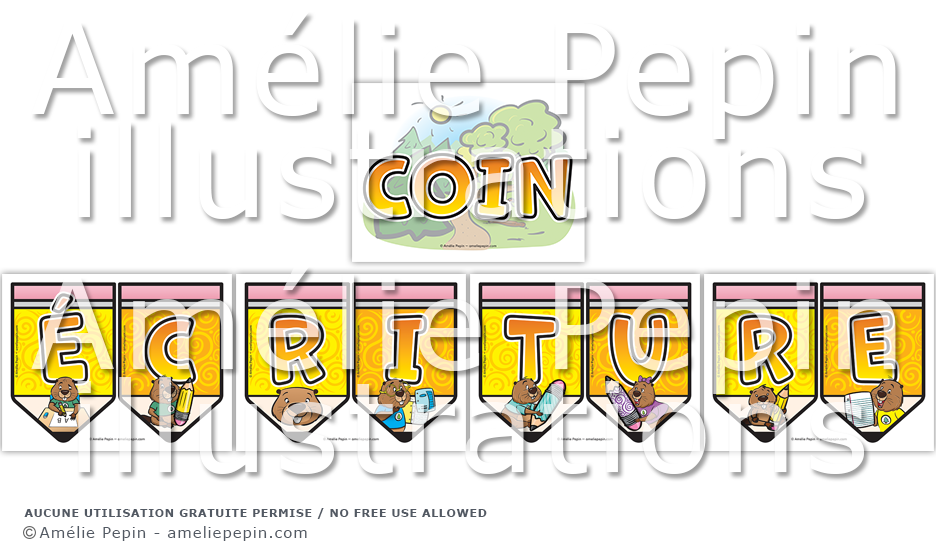 Créez un bel affichage pour votre coin écriture avec cette banderole illustrée avec des castors. Chaque page contient deux fanions en forme de crayon. Chaque fanion mesure environ 7,5 po de hauteur sur 4,9 po de largeur. Découpez chaque lettre et collez-les à votre mur, ou encore, conservez une bande blanche au-dessus du fanion lorsque vous découpez ceux-ci pour pouvoir plier cette partie sur une corde à suspendre. De plus, une page contient le mot "coin" à découper en un seul morceau.