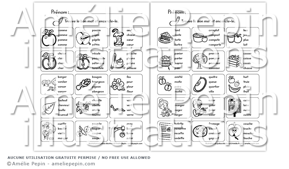 L'élève encercle le mot qui correspond à chaque image. Plusieurs mots se ressemblent, il devra lire les choix de réponse attentivement!
