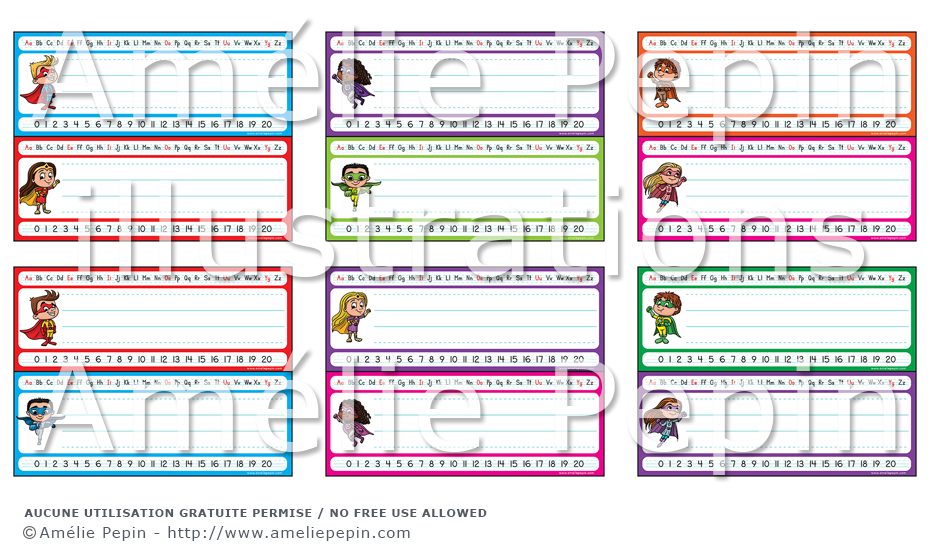 Étiquettes pour pupitres en SCRIPT, super-héros