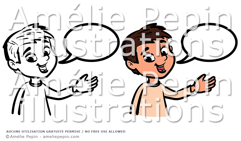 Ce dossier contient 4 modèles d'enfants avec une bulle pour parler offerts en quelques choix de couleurs de peau.