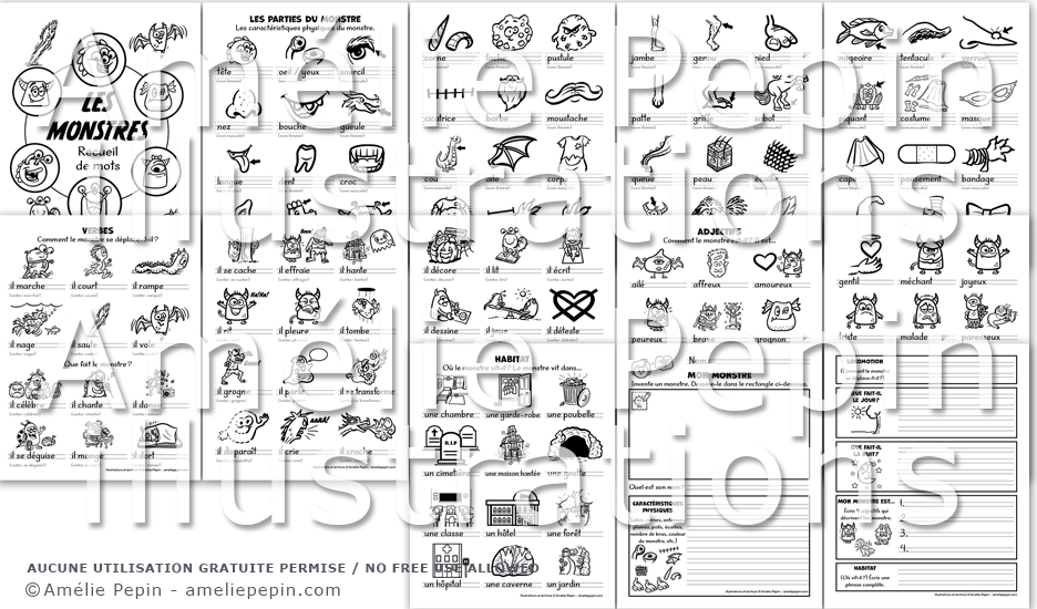 Les monstres - Recueil de mots illustrés et activité