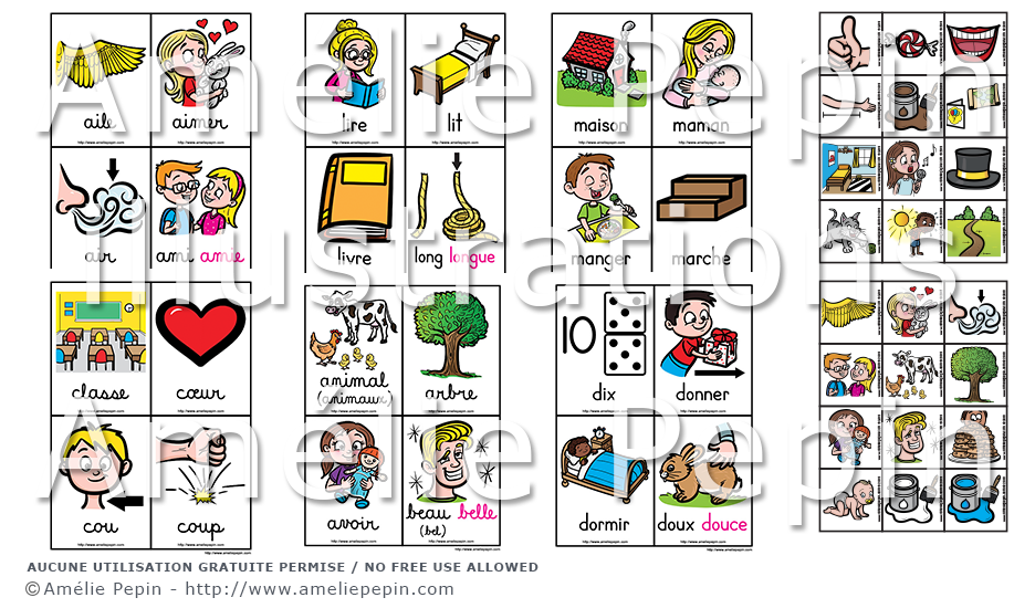 - Formats: 4 mots par page en couleurs (46 pages), 12 images sans texte par page en couleurs (15 pages)