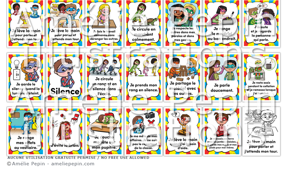 - Je lève la main pour parler et j'attends mon tour. (au bureau)
