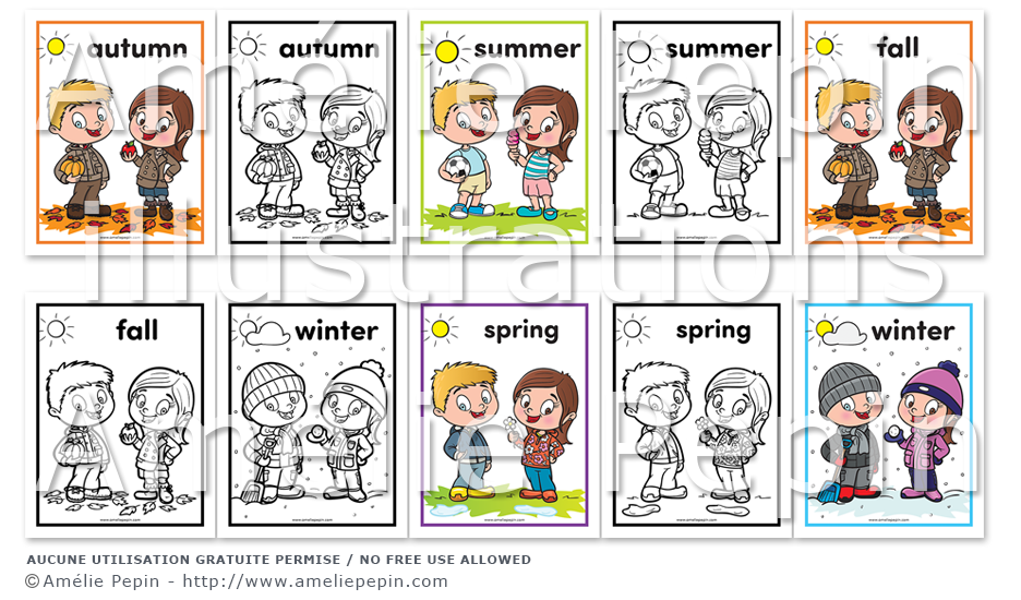 Tags: 1re année, Anglais, Préscolaire et maternelle, Thèmes, Enfants, Hiver, Été, Printemps, Automne
