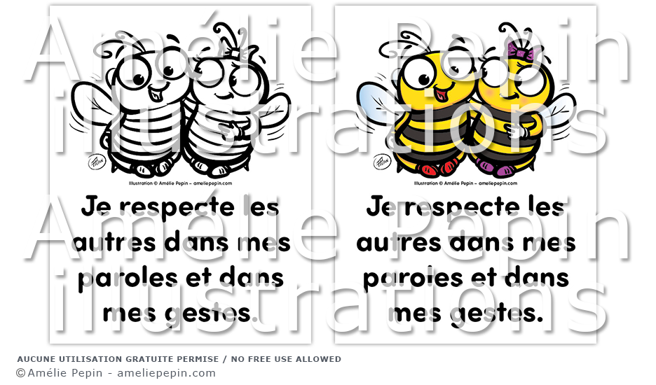 Règle de classe illustrée avec des abeilles: "Je respecte les autres dans mes paroles et dans mes gestes."