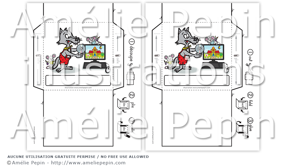 Les enfants peuvent découper et monter eux-mêmes leur pochette en suivant les 3 étapes illustrées.