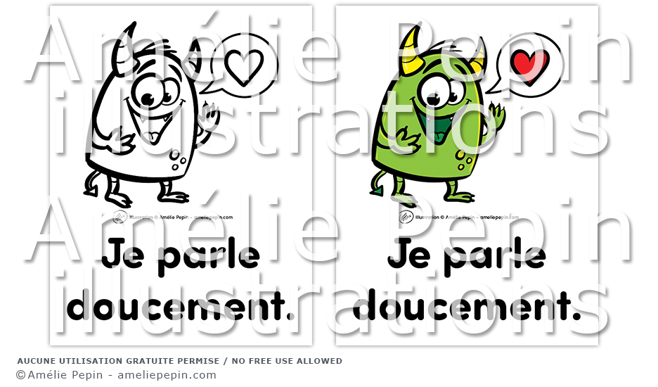 Règle de classe illustrée avec un monstre: "Je parle doucement."