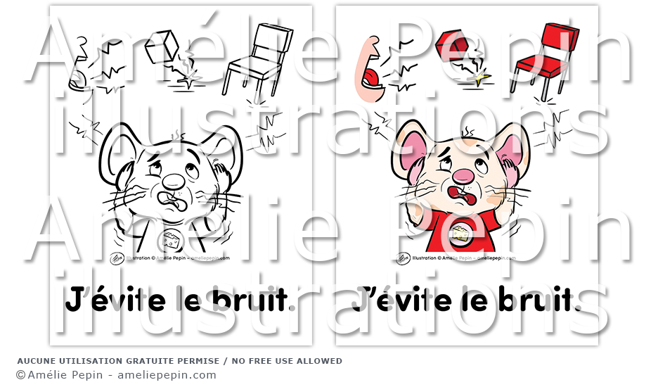 Règle de classe illustrée avec une souris: "J'évite le bruit."