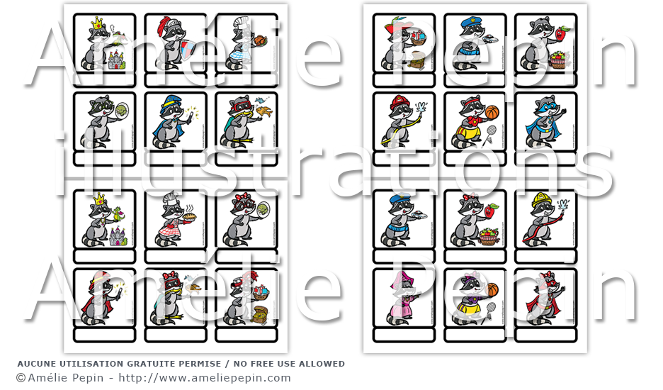 Ce fichier contient 12 ratons laveurs garçons et 12 ratons laveurs filles pour identifier les crochets de vos élèves (ou autre). Un espace est prévu sous l'image pour inscrire le prénom des enfants. Chaque étiquette mesure environ 3 po. X 3 1/2 po. Le document PowerPoint vous permet d'inscrire les noms des élèves à l'ordinateur.