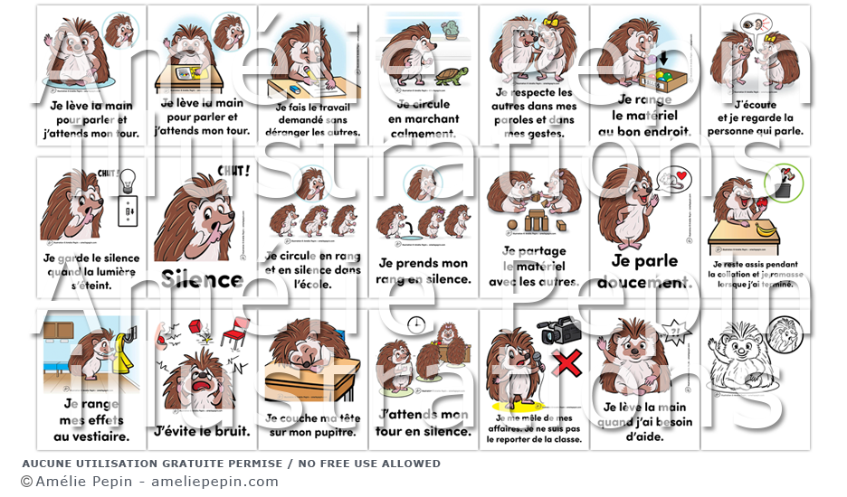 Les règles de vie illustrées avec des hérissons sont: