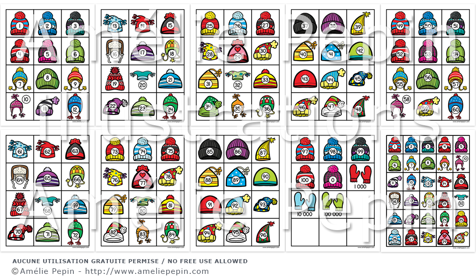 Les fichiers contiennent des tuques numérotées de 0 à 100 ainsi que les nombres "1 000", "10 000" et "100 000" illustrés par des mitaines.
