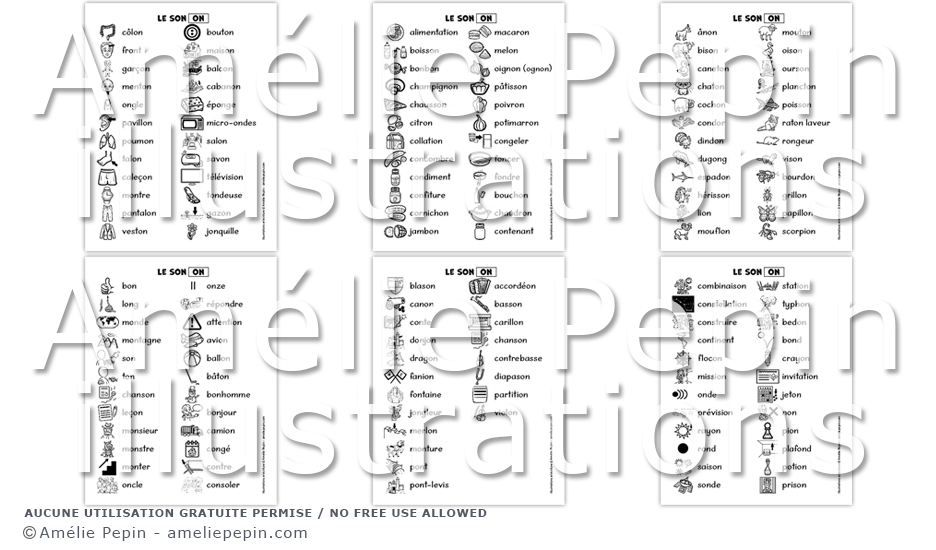 Le son ON - Liste de 140 mots illustrés