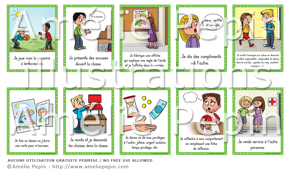 Ces fichiers contiennent une page couverture ainsi que 10 gestes de réparation. À noter que ces gestes sont inclus dans le grand ensemble des 40 gestes de réparation. Cliquez sur "Aperçu gratuit" afin de les visualiser.